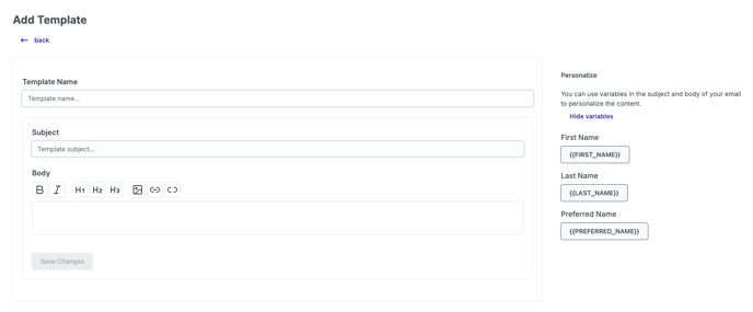 - To personalize a template, use the variables First Name, Last Name, and Preferred Name. This will input and personalize these values for each recruit in your message. If you select Preferred Name and a recruit does not have this field populated, it will default to using First Name instead.