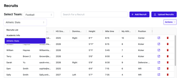 - Easily Delete a Recruit: Should you need to remove a recruit from your database, simply use the delete option directly from the Recruit Table. This ensures your data stays clean and relevant to your ongoing recruiting efforts.