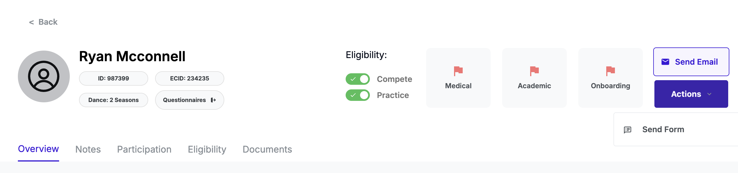 When bulk sending a form, these athletes will have an “Under 18” chip in the send modal — making it easy to deselect them and send separately via this individual process.