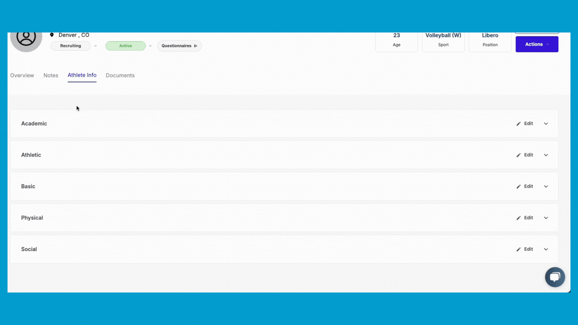 View Recruiting Questionnaire Responses: Access any recruiting questionnaires the athlete has filled out directly from their profile. This gives you quick insights into their background, preferences, and qualifications.