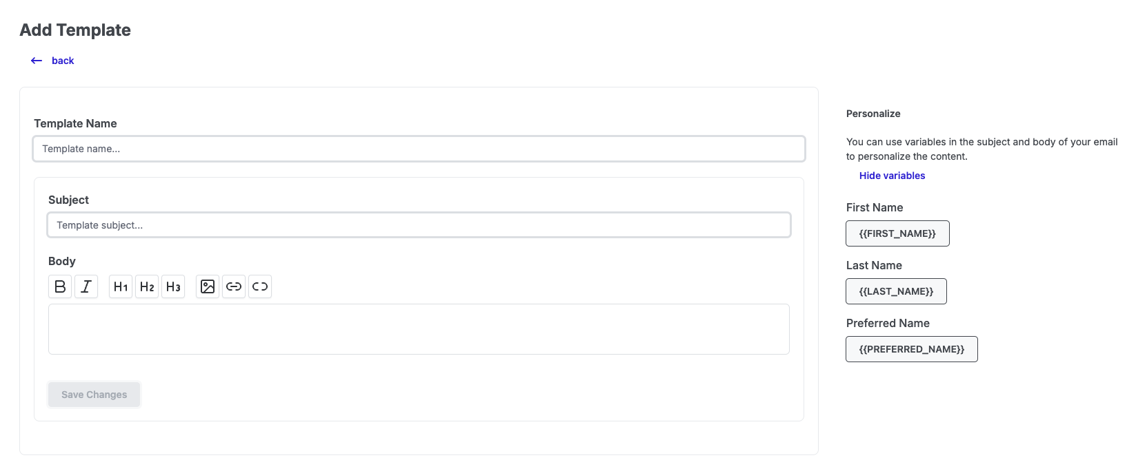- To personalize a template, use the variables First Name, Last Name, and Preferred Name. This will input and personalize these values for each recruit in your message. If you select Preferred Name and a recruit does not have this field populated, it will default to using First Name instead.