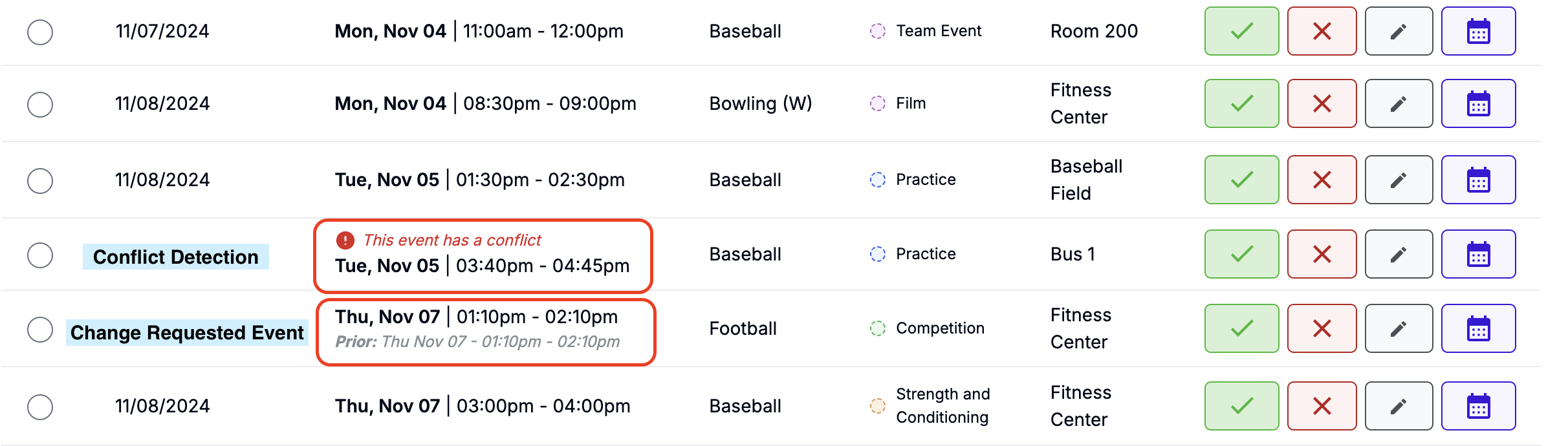 - Events can be submitted through the Calendar View by adding an event or by submitting an entire schedule via the Schedule Builder.