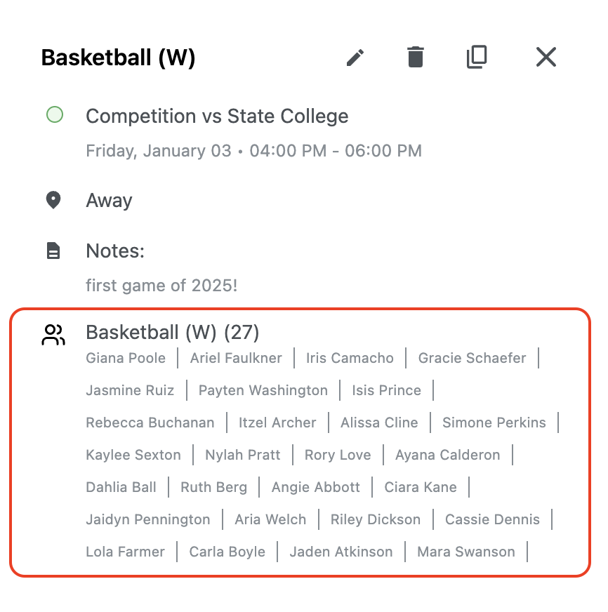 Tracking athlete participation in the WinWon Calendar is simple and effective. This feature allows coaches to: