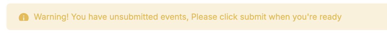 - Submit Events: When done, click “Submit request.” If not done, a yellow banner at the top of the screen will indicate you have events that need to be submitted. Continue adding more events to your schedule or submit when finished.