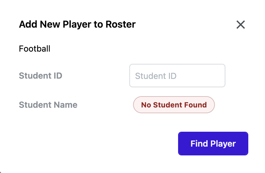 - Add Athlete: Input the student’s school ID to search for them and add them to the roster OR use the Search by Name feature. Learn more.
