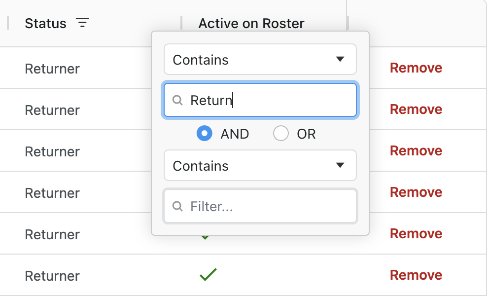 - Sort and Filter: Click the column name/header for any value to sort or filter by that column. Combine sorting or filtering across multiple columns to narrow down the data shown as you like.