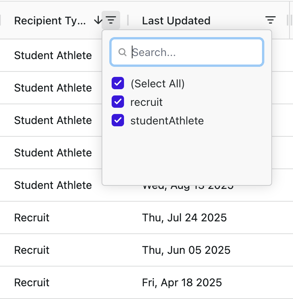 Some forms may be sent to student athletes (on an active roster) or recruits (in the recruiting database). The Recipient Type column in Forms List will indicate the audience for each form template.